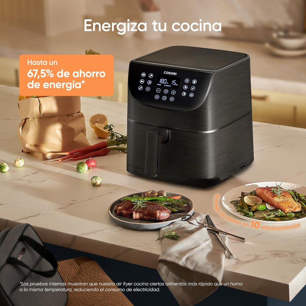 Si estás buscando una freidora de aire grande, potente y pensada para usar a diario, este análisis de la Cosori Freidora de Aire 5,7L (CP158-AF) va justo al grano: es de esas air fryer que no se quedan en “cumple y ya”, sino que terminan convirtiéndose en tu forma habitual de cocinar. Lo que más me ha sorprendido es que la comida sale realmente sabrosa, con un punto “cocinado de verdad” (no solo calentado rápido), y eso marca diferencia frente a modelos que priorizan velocidad pero se quedan cortos en sabor y textura. Además, si eres de los que odian la cocina llena de grasa, aquí hay un cambio claro en el día a día.
