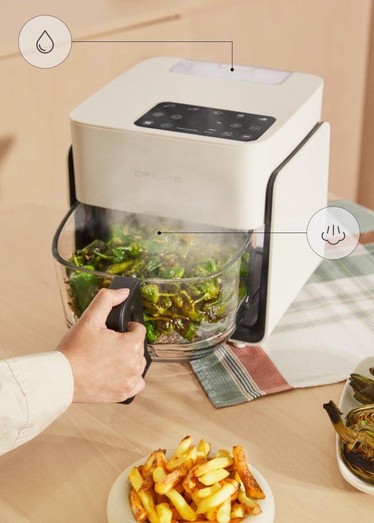 Si lo que quieres es una air fryer que se sienta distinta, más cuidada, con un enfoque de cocina con control (ver, ajustar, cocinar con calma) y un extra de vapor para mejorar texturas, esta CREATE Studio Crystal tiene mucho sentido. Es una compra con personalidad: no busca ser la más potente ni la más ligera, busca ser agradable de usar, limpia a la vista y más precisa por el simple hecho de que ves lo que pasa dentro.