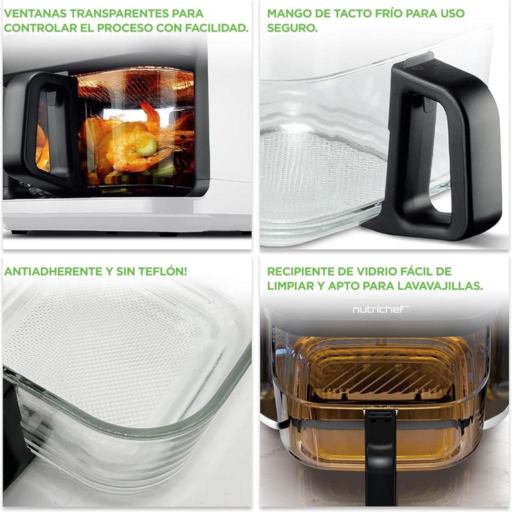 La Nutrichef freidora de aire de 5,5L es uno de esos modelos que, sin hacer mucho ruido, termina destacando por detalles prácticos que en el día a día marcan la diferencia. No busca competir por funciones avanzadas, sino por ofrecer una experiencia sencilla, cómoda y bastante bien resuelta.