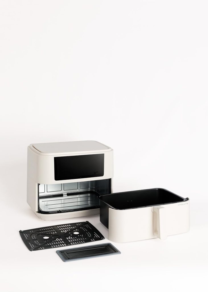 La CREATE Fryer Air Dual 10 litros merece la pena para quien busca una freidora grande, práctica y visualmente atractiva. Su capacidad, el divisor interior y la buena potencia hacen que sea especialmente interesante para hogares de cuatro personas o más.